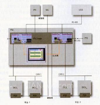 除了经CAN总线的门控制器连接外,PSC通过RS485与本地环境监视系统(LESS)通信、通过RS232与PTE通信、通过以太网与显示器通信、通过开关量信号与正序列车辩识器(PTI)通信。由贝加莱2003提供的通信灵活性毫无问题满足了这些网络要求。CP476 CPU处理所有门控制器、开关量I/O和网络连接。