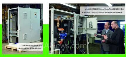 所谓的“简单网络管理协议”(SNMP)通常要用于IT基础设施内的通信。这对制冷系统来说就意味着控制器也必须通过SNMP进行通信。ers公司的员工通过WAGO控制器实现这一点。支持SNPM协议和Modbus通信的750-881以太网控制器用于当前的水-水热换器中。使用WAGOI/O-SYSTEM的I/O模块可以连接系统中的各种传感器和执行器。除了使用模拟量及数字量输入和输出模块来控制阀门以及读取开关和传感器信息外,还使用了Pt100模块等功能模块,用来采集系统内各个点的温度。
