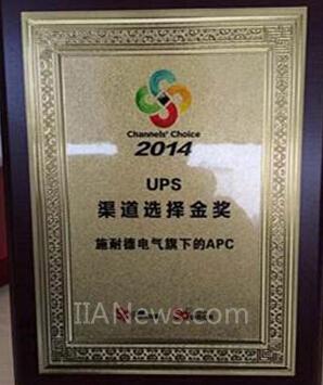 图:施耐德电气获“渠道选择2014 ——UPS渠道选择金奖”