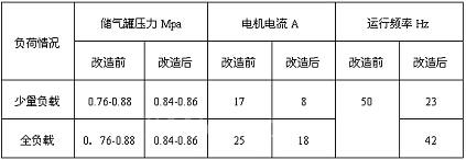 在整个工作过程中,无论负载用气量的大小空压机都不会停机,而是降低运行频率减少了频繁启停操作对设备造成的冲击。由于用户所使用的是螺杆式空气压缩机,属于等容式风机所以最大出口压力不会因为转速的降低而降低,只要保证能够在螺杆上形成油膜保证压缩机润滑即可,因此根据实际情况将变频器的最低运行频率设定在10Hz以保证设备的润滑。变频器在出厂前均经过满载的整机出厂检验和调试,因此调试、上电运行都进行顺利,一次投运成功,目前变频器一直可靠运行。