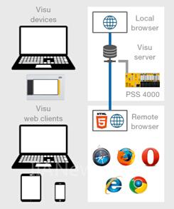 网络客户端访问PASvisu:PASvisu服务器使用连接的所有网络浏览器管理数据交换。