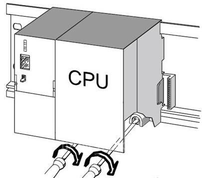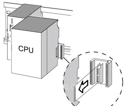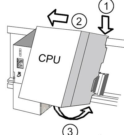 从机架左边开始,按照“先电源模块、再CPU、最后SM/FM/CP/IM模块”的顺序,将模块挂靠在导轨上。具体步骤如下: