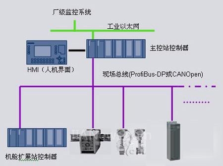 采用LAN/FieldBus系统结构,主控站控制器对外提供百兆以太网接口,利用现场总线完成机舱扩展站控制器或其它现场智能设备(变频器等)的连接。主控站以太网接口支持标准的MODBUS TCP/IP规约,并支持UDP协议。
