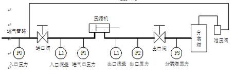 炼油产生的气体,经过压缩机加压后凝为液态进入分离塔,经过吸收等其他加工工艺,提取出石油液化气。进气口压力P1要求小于0.6MPa,压缩机出口压力P2可达到1.2MPa~1.7MPa之间,经出口阀调节后保证分离塔压力P3在1.05MPa。如果某种原因使分离塔压力升高,为安全起见则泄压阀打开,将分离塔内液体经管道回流进气口。