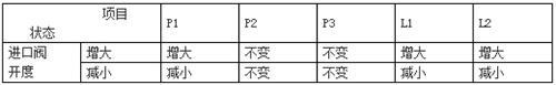 由表(1)和表(2)所反映的在P0改变时和进口阀开度改变时,P1、P2、P3和L1、L2的变化可见,进气P0的升高或降低,使P1、L1和L2发生相应的改变。如果要使流量L1和L2不变,可调节进口阀的开度往P0增加的相反方向变化,即P0增大,进口阀开度减少,或P0降低,进口阀开度增大。