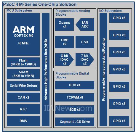 赛普拉斯推出PSoC® 4可编程片上系统架构中的一个新产品系列,拥有数量几乎翻倍的可编程模拟模块和可编程数字模块用于生成定制化的接口和模拟前端。