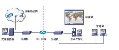 此系统的终端显示部分可采用大尺寸液晶屏,最好80英寸以上,如果没有,可以考虑使用拼接屏,为了美观,可以和项目一中使用同样的显示屏,整个系统的结构如下(只选用一个分厂表示,其它分厂与其相似):