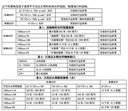 只要万兆以太网的物理接口类型在光纤链路的两端是一样的,模块的规格是可以互通使用的。例如,可以通过连接一个10GBase-SR XFP光纤模块和一个10GBase-SR SFP+来部署一条光纤链路。然而,一个10GBase-SR SFP+的光纤模块不能连接到10GBase-LRM SFP+光纤模块。