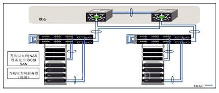 新标准——互联网小型计算机系统接口(iSCSI)——使万兆以太网成为SAN应用中具有吸引力和可供选择的互联介质。iSCSI是在大多数存储设备和光纤通道中进行块传输的SCSI协议的扩展。互联网扩展的协议定义了在IP网络上扩展块转移的协议,从而使标准的以太网基础架构可以作为SAN存储的互联介质。基本的iSCSI在现今的大多数操作系统中都支持。最新的iSCSI性能使万兆以太网相对于光纤通道更能顺利地成为SAN存储的互联介质: