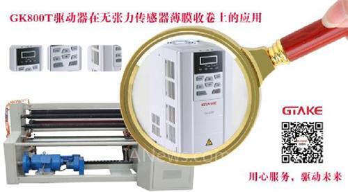吉泰科公司推出的GK800T张力控制变频器,无需安装张力传感器,就可以进行恒张力控制,并且可以控制张力锥度,保证收卷后各层形状均匀,而且极大的提高了分切机的运行速度。