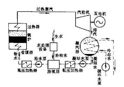 火电厂的种类虽很多,但从能量转换的观点分析,其生产过程却是基本相同的,概括地说是把燃料(煤)中含有的化学能转变为电能的过程。整个生产过程可分为三个阶段: