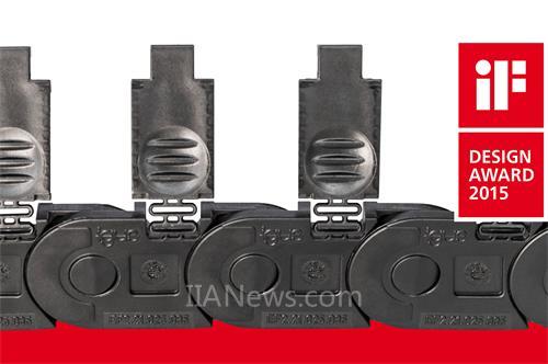 易格斯产品再次获得iF评委会的青睐, EF2.21系列拖链获得iF产品设计奖。该产品使用加强纤维材料的一片式链节横杆,保留了具备灵活度和强度,成本更低。