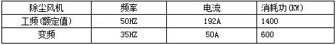 (2)采用变频运行后,由于电机轴功率下降,除尘风机转速降低,减轻了机械振动和噪声,可延长设备使用寿命,改善了劳动环境;