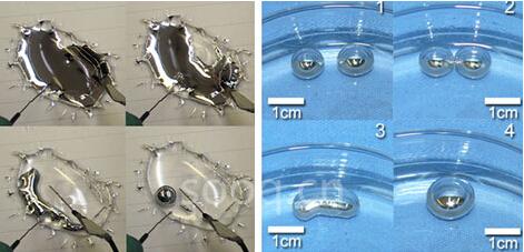 在清华大学教授刘静的实验室中,出现了这样一幕:电解液中,一张薄膜瞬间变为直径约5毫米的液态镓金属球,并在吞“食”0.012克铝后,以每秒5厘米的速度移动,且其形态可以随槽道的宽窄自动变形调整,蜿蜒前行,整个过程宛如科幻影片中的液态金属机器人“终结者”。