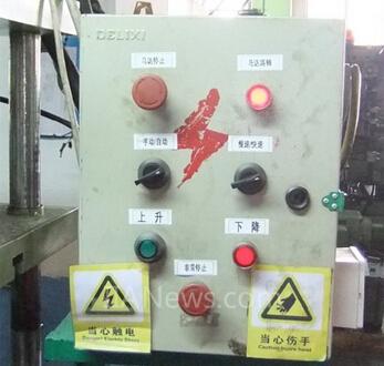 整个液压冲床的各个环节的工作内容不变以及油缸下行红外线防压手保护功能有效等,需要改造的环节在于操作人员上下需要冲压的物料时,此时的等待时间,在等待时,使电机低频运行并处于低循环保压状态,当是要工作时,操作人员知道按动操作台上的双手启动按钮即可开始正常供油操作,整体工作使用2段速度运行,油缸下行工作时,电机加速,操作人员上下物料时,电机低频保压工作。