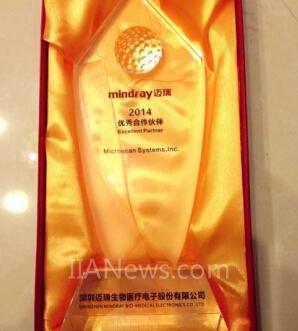 深圳迈瑞生物医疗电子股份有限公司授予美国迈思肯 2014 年度“优秀供应商奖”。