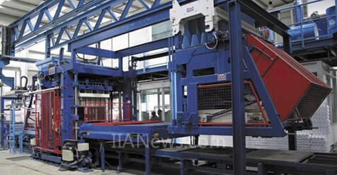 一台全自动砌块成型机主要由皮带输送机、振动成型机(主机)、送板机、出砖机、码垛机、控制柜、液压泵站等组成,其中振动成型装置是砌块成型机的核心部分,其性能直接决定着机器本身及成型砌块的优劣。