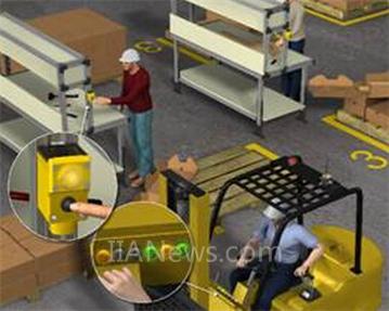 不远处,一辆AGV拖着一个内饰货架由远及近,然后缓慢地停靠进一个地面上标识着一个鲜明的黄色矩形框内。这就是AGV小车的卸料位。此时货架一侧的挡块开启,装有不同内饰零件的托盘滑落到装配工位旁的货架上。AGV确认卸货完毕后驶回物料配送区。这就是物料自动配送系统。整个系统有若干辆AGV、AGV调度指挥系统、货架执行机构和线边物料呼叫系统等组成。而其中使用了两种无线技术。AGV的自由行走依靠的是WiFi;而线边物料呼叫系统采用的是邦纳特有的无线呼叫按钮。相比以往人工模式,全自动化配送效率更高。整个过程自动监控,不会发生漏发和错发,可以实现历史记录浏览,而且作业人员无需脱岗。随着生产规模的扩大,利用无线可以实现作业点灵活移位和按需扩充。