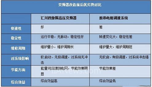 通过现场长时间的测试情况来看,汇川HD92-F060/500-RN的四象限高压变频器完全能够满足现场的提升机工艺需求,变频改造不仅能够实现显著地节能效果,且能够改善运行工艺,达到多重改造效果,经济效益及社会效益显著。