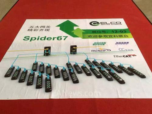 在“宜科助力工业4.0 提供全方位智慧工厂及智能制造解决方案”醒目的标题下,就是宜科多款新品的展示区。在这面展墙前,众多用户驻足,一位来自纺织行业的观众对Spider67表示了浓厚的兴趣:“我以前一直在使用独立的模块,点数一多就很不方便,Spider67的IO扩展能力如何?”产品经理解答道:“既然定位是通用型现场级IO,衡量其一个重要的指标就是扩展性。它可以进行4路不同方向的扩展,单路长度达到100米,每路可以扩展6个模块,也就是说对于直径100米的范围内,192个控制点的现场,Spider67都可以轻松应对。”