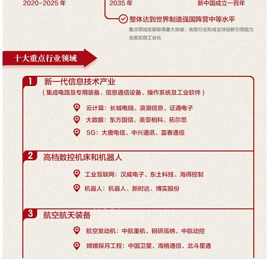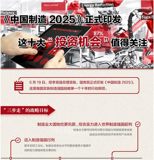 《中国制造2025》是中国实施制造强国战略第一个十年的行动纲领。在这样的背景下,有哪些行业是值得投资的呢?一张图知晓中国制造2025十大投资机会。