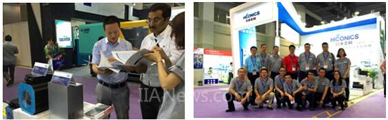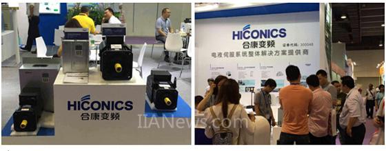 合康变频展示了HID618A系列电液伺服驱动器及HK系列伺服电机。HID618A系列伺服驱动器可驱动永磁同步电机,集成液压系统的压力、流量双闭环控制,帮助塑机企业生产高精准的优质产品,在提高产品性价比的同时,也为企业取得了良好的节能经济效益。