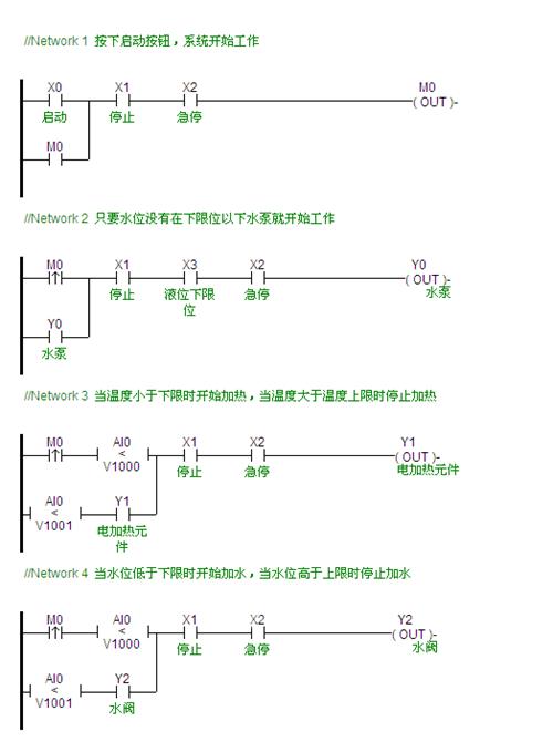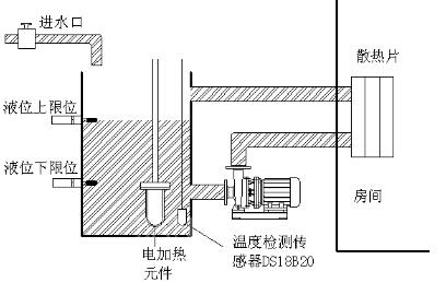 1.2 用温度检测传感器检测水温,如果水温低于设定值下限则电加热元件开始加热;如果水温高于设定值上限则电加热元件停止加热;