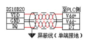 H04DT小巧方便,接线简单。其配套使用的DS18B20数字量温度传感器,具有体积小,硬件开销低,抗干扰能力强,精度高,可精确到0.065℃,接线方便等特点。下面图是DS18B20与海为H04DT模块接线图: