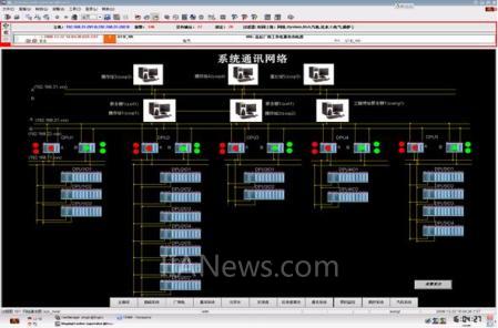 该系统包括2台操作员站、1对冗余数据服务器(同时兼作操作员站)、1台工程师站、1台值长站、5对冗余DPU站,采用了过程数据服务器冗余、控制总线和I/O总线冗余的网络架构,提供了稳定可靠,符合电厂生产要求的数据采集监控和现场级控制工艺设计。