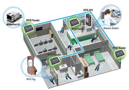 来自中国上海的某公司专业RFID读卡器,为各种细分市场(如物流、学校和医院等)提供RFID解决方案。在这个案例中,该公司希望通过一个RFID解决方案来监管退休在家居民的活动,计划在每平方米内采用一个串口RFID读卡器,然后将其通过骨干以太网进行连接和管理。