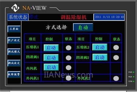 自动控制:根据室内温湿度的设计要求,实时检测室内的温湿度、室外温度和系统的运行状态,根据室内温湿度的变化和室外温度条件,自动转换系统的运行模式,以保证室内的温湿度要求和系统安全运行。