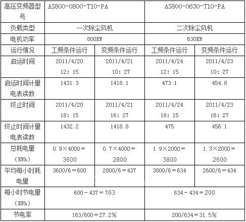 高压变频器在现场系统相通工况下,做了电机在工频条件和变频条件下耗电量对比试验。详细情况如下: