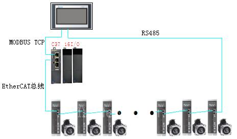 1.C37 1G主频PLC同H1A伺服驱驱动器采用EtherCAT通讯模式,1G主频PLC执行程序速度快,EtherCAT总线通讯周期能稳定在1ms,横移花型工艺数据通过MODBUS TCP下载到PLC,更换花型工艺方便。伺服驱动器可同时进行EtherCAT和RS485通讯,EtherCAT通讯控制横移运动,RS485通讯进行监控横移针位、横移状态