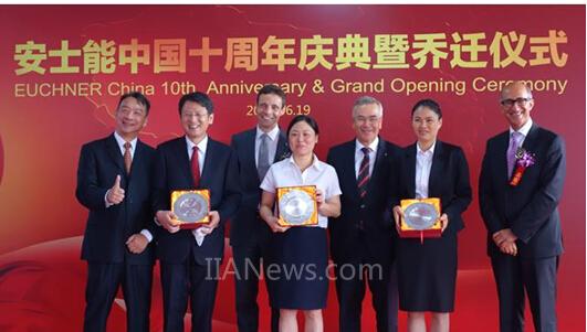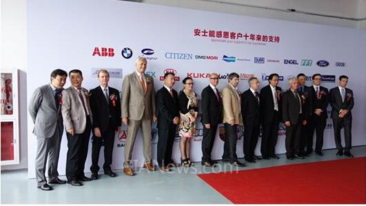 2015年6月19日全球著名的安全开关企业德国安士能集团中国分公司成立10周年庆典暨乔迁仪式在上海松江工业区中山工业园新址内隆重举行。IIANews记者也受邀参加了此次活动。戴姆勒股份有限公司Mr. Gruslak,山崎马扎克Mr. Tashiyuki,上海松江工业区茸北经济发展有限公司常务总经理丁健先生,施惠特经济开发区主任翁敏旋女士,上海友喜建设集团董事长蔡建波先生,德国工商大会上海代表处总经理 Mr. Christopher Angerbauer,德国机械设备制造业联合会首席代表Mr. Daniel Yoo等嘉宾,以及安士能集团全球总裁 Mr. Stephan Euchner,首席财务官兼中国董事长Mr. Kai Scholl, 出口总监 Mr. Goeges Hindi, 首席运营官 Dr. HaraldGruebel,安士能中国区总经理刘诗益等管理层出席了此次活动。