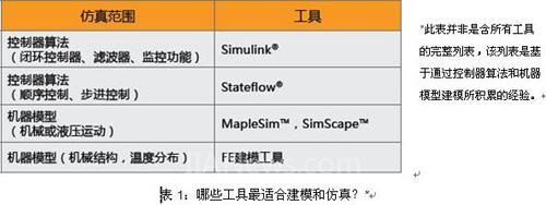 前者主要影响仿真工具和建模类型的选择(FE模型、微分方程组、物理建模等;见表1),而后者表现为一种根本性的差异。当然,我们最终应该将机器模型和控制功能放在一起进行测试,但是在开发的时候必须将这两者分开看待。