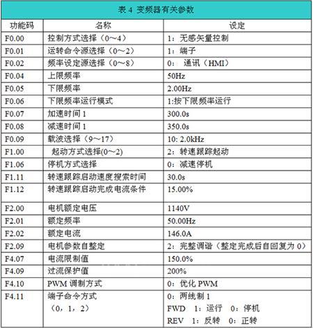 (3)变频器有关参数设置如表4所示。