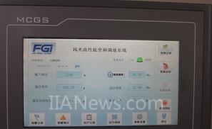 正兴煤业九鑫矿主扇风机选用型号JD-BP34-270F风光变频器4套,于2012年7月2日一次性投运成功。变频运行后,风门全部打开,运行频率26Hz左右,不仅完全满足煤矿生产工艺要求,而且用户操作非常方便。变频器运行稳定。变频器现场运行如图4所示,人机界面运行如图5所示,变频器运行参数记录如表5所示。