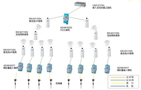 技术优势:-6017可实现分布式采集;2. EKI-6311GN达到IP65防护等级,可作为无线AP和网桥使用,保障可靠传输,规避布线不便的问题。