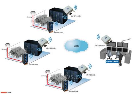 每个在远程站点的点火试验引擎配有一个IDS-5042-WG,通过串口采集现场测试数据和接受控制中心指令,所有IDS-5042-WG采集到的数据会通过无线被传输到现场端AP IAP-6701-WG+.