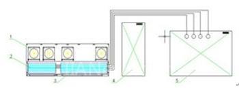 1、柜顶风机 2、功率柜顶表冷器 3、变压器柜顶表冷器 4、电控柜 5、制冷压缩机组
