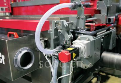 重田社长:我们研发的激光凹版制版系统“New FX2”配有2台FANUC R-2000iB机器人,实现了激光加工和电镀等13道工序的完全自动化。拥有机器人的系统与以前采用吊车的系统相比,实现了安装面积、耗电、VOC/CO2排放量、油墨和溶剂使用量以及操作员人数的削减。“New FX2”中还装有FANUC Power Motion伺服装置,可以让电镀的电极迅速准确地动作或准确地驱动喷嘴。