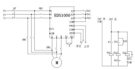 该方案采用EDS1000变频器,在开环矢量控制模式下具有低频启动扭矩大、响应速度快等特点,在0.5Hz启动时其输出转矩可达150%额定转矩,完全能够满足电梯的工艺要求;