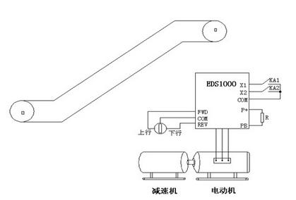 变频器应用在自动扶梯节能改造时,要求变频器启动运行平稳,加速性能好,启动转矩大,过载能力强。使用高性能EDS1000系列无速度矢量变频器能很好的满足此类自动扶梯的应用要求。易能变频器自动控制调速扶梯系统,采用多段速控制方式,两种运行频率,对应低速和高速。当有乘客站在扶梯上时,变频器控制扶梯以额定转速运行,而当无人时,变频器调节转速使扶梯以低速运行,达到很好的节能效果。