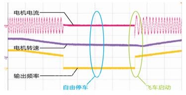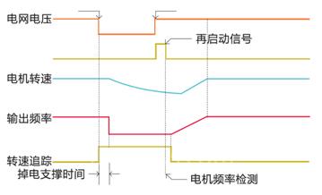 HD90系列高压变频器具备飞车启动功能,能够在未知电机旋转速度的状况下启动变频器,变频器自动进行频率搜索,直至搜索到与电机实时旋转频率相符的频率,此时变频器输出相应频率,并控制电机旋转至指定频率,此技术能有效减少瞬间停电对生产的影响以及对电网的冲击。