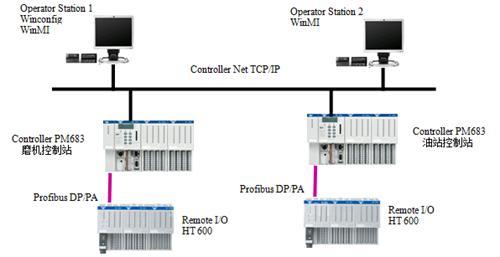 本项目采用杭州盈控HT 600自动化控制系统, 配置拓扑图如下: