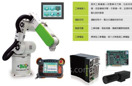 智能制造:由IEI集团内专精于工业自动化的公司-洋威数控所提供方案,提供生产设备所需之智能控制相关产品,协助客户感知目前加工中物品的状态,通过总线I/O数据收集器与工业网络的传递,将信息送至控制计算机中,经由计算机中的智能控制软件进行运算后,下达相关动作指令至各个驱动组件,让生产线的加工设备、机器人或是AGV无人搬运车进行作业,完成产品之智造;例如,在流水线的前端安置一组工业相机,利用相机撷取生生产线之影像,再经由智能判断,识别出物品种类与物品旋转角度,最后再通知机械手将该物品抓取至指定位置,同时调整物品达到期待的姿态。这一系列的动作包含智能化的重要元素:感知、决策与行动,将此技术进行扩充与调适,可适用于各种需要智能化生产之应用场合,可降低生产线之人力需求,同时提高产品生产之可靠度,并可依据生产需求而快速扩充产能,达成智能工厂建置之终极目标。