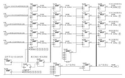 根据控制需要,分别设定好石灰石、砂岩、黏土和铁粉的配比,操作员只需给出产量,系统自动生成与之适应的分量,达到其控制要求。在任何情况下进行手动—自动切换而不产生扰动。