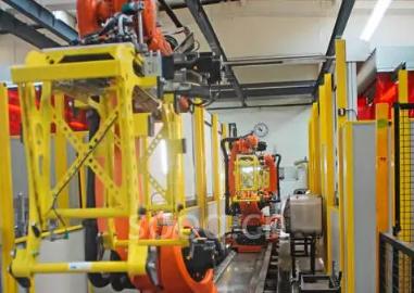 KUKA为其设计的解决方案是这样的:整个生产线总共包括 20 个不同的工位,其中 12 个为纯焊接工位。三个 KUKA KR 270 R2700 ultra 机器人安装在KUKA线性单元 KL 1500 上,用于将消声器移动至不同的工作站。为了将各个小型零配件固定在消声器上,将两个KUKA KR 5 sixx R850 型号的小型搬运机器人集成到焊接单元内。机器人将零配件从库中取出并将其准确地保持在消声器上, 由焊接机器人进行定位和焊接。五个焊接机器人 KR 16 L8 arc HW 构成了一条生产线。该类型KUKA机器人作为气体保护焊接专家,主要用于较大部件的焊接。通孔直径达 60 mm 的 Hollow Wrist 空心轴结构集成了不同制造商的焊枪和介质供给线路,由此 可使焊接包始终受到保护,确保提高刚性并减小振动。