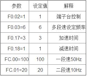 根据现场电机功率选用普传PI9100a 004G3电流型矢量型变频器。PLC自动控制系统程序是原来已有的,根据了解此类机器工艺,知道其控制原理。变频器加减速时间分别设置为3S、1S;采用两段速度控制,一段全速50Hz,二段速度10Hz。