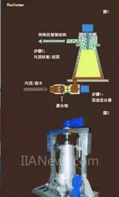 首先,在涡流混合器内把絮凝剂(聚合物)添加到污泥中,在絮凝完成后,把所产生的大量絮状污泥在絮凝反应器中进行挤压,从而生成经过高度固液分离的污泥絮团。